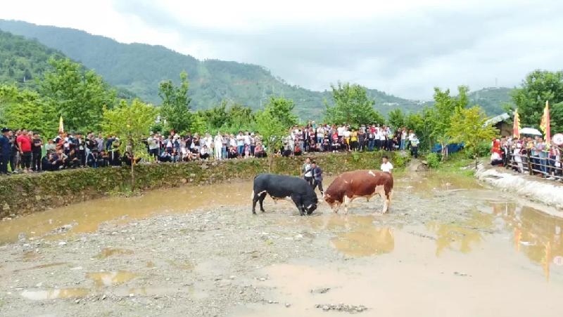 传统节目斗牛、斗羊、斗鸡、摔跤、押胛、扭扁担、打秋千、套鸡、扳手劲……活动现场,人头攒动,热闹非凡。不少游客市民情不自禁地参与其中、乐在其中,领略到了民族传统文化的魅力。