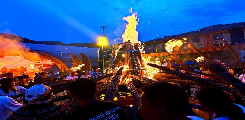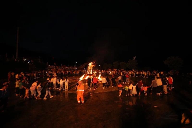独具特色的“火把盛宴、欢快锅庄”焕发出耀眼夺目的光彩,整个广场沉浸在一片欢乐的海洋之中。