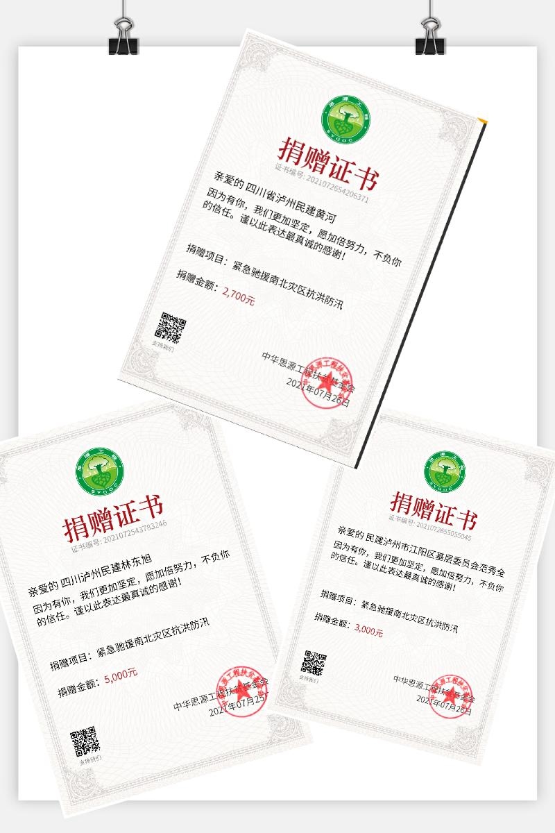 “看到河南的洪灾,让我觉得人类在自然灾害面前太渺小了,然而那些素不相识的群众在灾难面前相互帮助、奋力抗争的场面让我无比感动。我也要给河南人民捐款,献出自己的绵薄之力,希望他们早日从灾难灾情中走出来。”7月21日上午,民建泸州市江阳区基层委员会会员、泸州东旭实业有限公司总经理林东旭打电话给民建泸州市江阳区基层委员会主委,带头主动向河南灾区捐款。后续几天,民建江阳区基层委员会接到了很多会员类似的主动捐款电话、短信和微信。连日来,民建江阳区基层委员会会员们你五百我一千他三千,纷纷捐献“爱心”。截止7月26日,民建江阳区基层委会会员们通过华思源工程扶贫基金会向河南自发捐款近3万元。