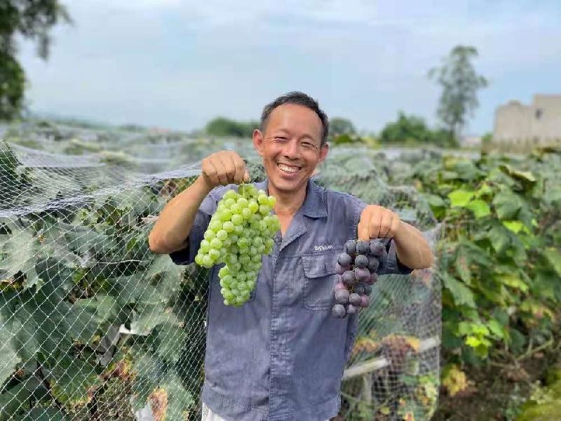 于是,艾国华夫妇便返乡开启发展葡萄种植业,自己的土地加上流转土地,种下的10余亩葡萄苗终究是不负艾国华的美好祈愿,黑紫的葡萄浑圆饱满,汁水甘甜又略带果酸,好品相加上好味道,艾国华的葡萄从本社传到其他村,再从本镇传到其他市,销路越做越广。