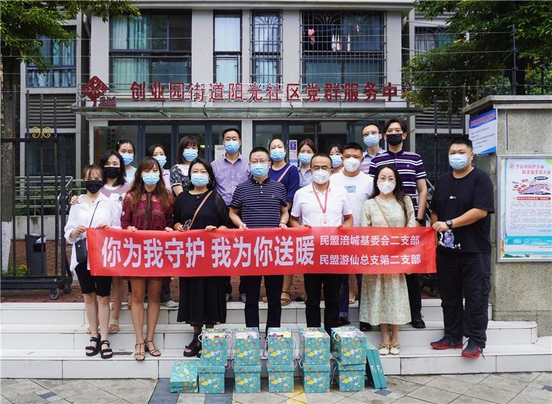 为了支持基层疫情防控工作,8月7日上午,游仙总支二支部和涪城基委二支部组织盟员走进阳光社区,开展“你为我守护,我为你送暖”公益活动。活动中,盟员们向坚守岗位的社区一线工作人员赠送了水果等慰问品,并向他们无私辛苦的付出致以了崇高的敬意和衷心的感谢。