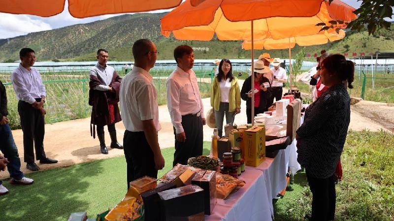 在得荣县中藏药材种植示范基地,于立军部长听取了得荣县中藏药材产业发展情况汇报,察看了云木香、秦艽、羌活等育苗大棚和露天种植示范区,详细了解了基地运营模式和现状、党员示范带动农户增收致富、延伸完善中藏药材产业发展链条和“农旅融合”“药旅融合”等情况。