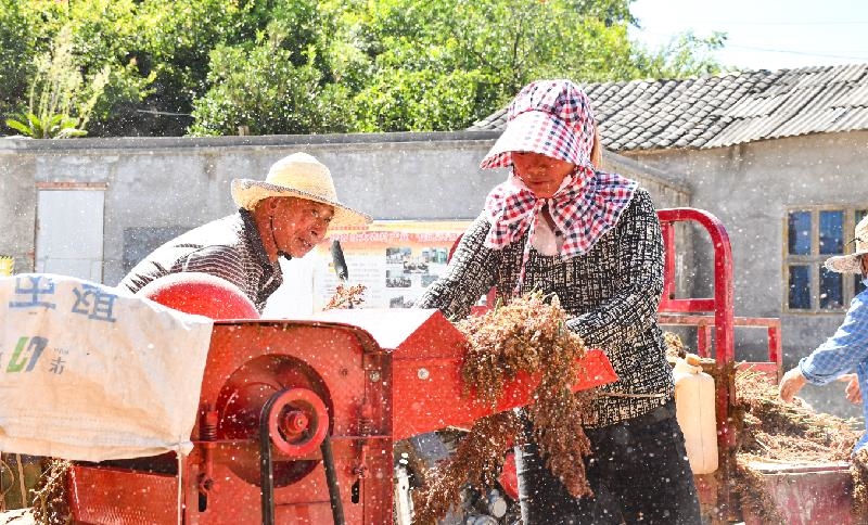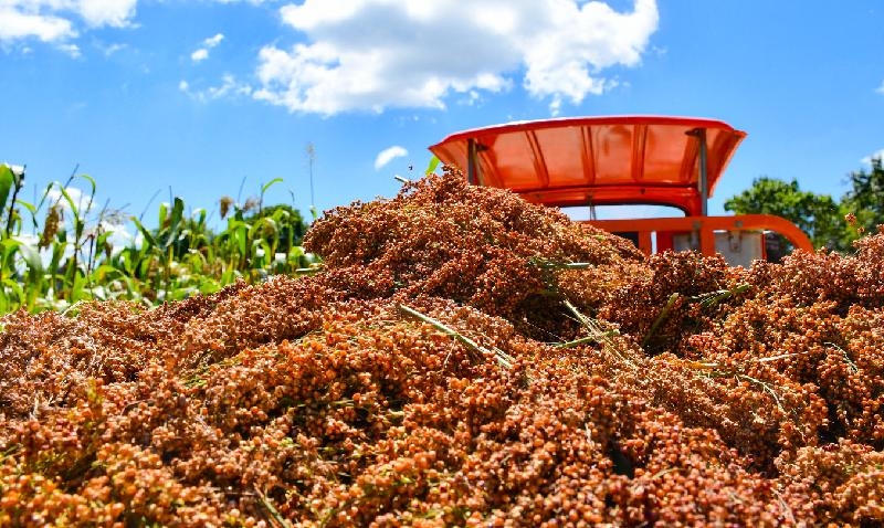 当前,金兰街道兴阳村乡贤产业园的2000余亩红樱子高粱已经成熟,村民们正在抢抓收获。