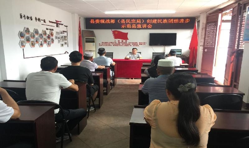 通过召开宣讲会、赠送法律法规资料及宣传物品,在各宗教活动场所张贴“中华民族一家亲,同心共筑中国梦”宣传画等形式,向宗教场所负责人及信教群众宣传党和国家民族宗教政策法规及相关法律法规,现场解答民族宗教政策。引导宗教界人士和信教群众爱国爱教,牢固树立“汉族离不开少数民族、少数民族离不开汉族、各少数民族之间也互相离不开”思想,增进对伟大祖国、中华民族、中华文化、中国共产党、中国特色社会主义的认同,自觉抵御宗教渗透、反对破坏民族团结言行。让宗教活动场所成为民族团结的宣传教育阵地,使宗教界人士成为民族团结的宣传员和践行者,为维护民族团结和社会和谐稳定贡献力量。