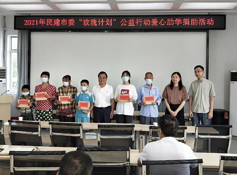 8月23日,民建自贡市委2021年首场“玫瑰计划”公益助学行动在自贡市自流井区飞龙峡镇丁香村举行。