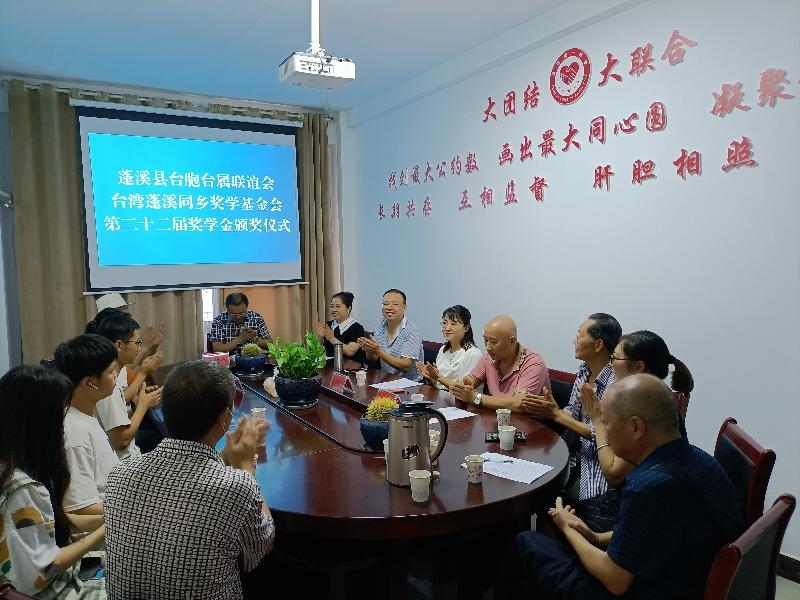 在县台胞台属联谊会、台湾蓬溪同乡奖学基金会第二十二届奖学金颁奖仪式上,为今年参加高考且被高校录取的品学兼优、家庭经济较困难的4名大学新生发放奖学金共计8000元。县台联会一直以“让捐助者放心、让受助者暖心”为目标,以帮助台属困难家庭及品学兼优学生为己任,现已颁发奖学金22届,共计奖励赞助学生200余人。
