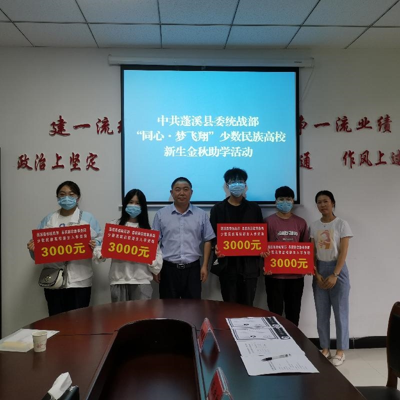 在县民宗局金秋助学活动中,为4名少数民族高校新生每人发放助学金3000元。受资助学生纷纷表示,要树立远大抱负,坚定理想信念,立志为自己奋斗,为家乡争光、为民族争光、为祖国争光;要发扬自强不息精神,坚持勤奋刻苦学习,做一个有远大抱负、自强不息、懂得感恩、报效祖国的人,用实际行动书写不悔青春;要永怀感恩之心,积极投身于实现中华民族伟大复兴的各项事业中,甘于奉献在建设富强文明和谐社会的具体实践中,奉献青春智慧,谱写青春华章。