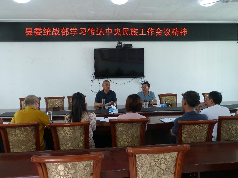 8月31日,德昌县委统战部专题传达学习中央民族工作会议精神,研究部署贯彻落实工作。县委常委、统战部长海连虎参加会议并讲话。