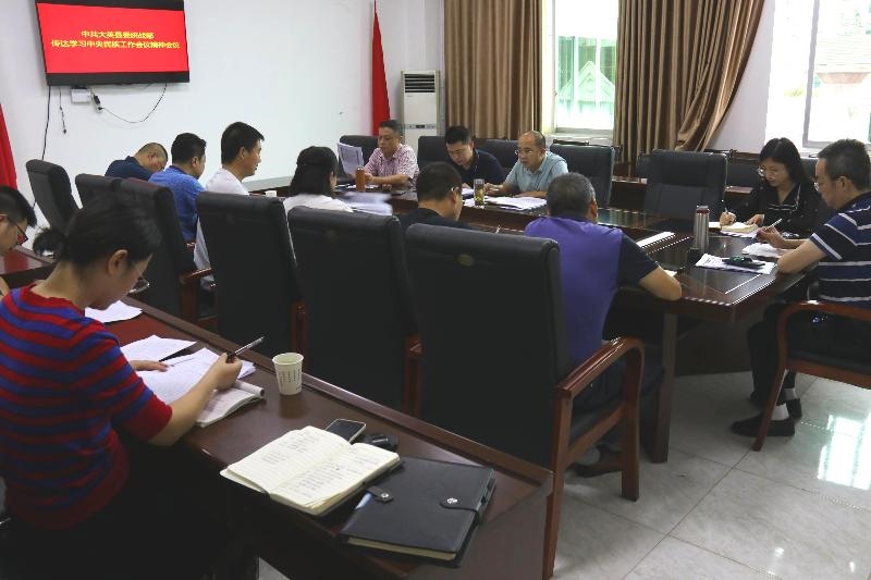 9月1日,大英县委统战部召开专题会议,集中学习习近平总书记在中央民族工作会议上的重要讲话精神。县委统战部、县工商联全体干部职工参加会议。
