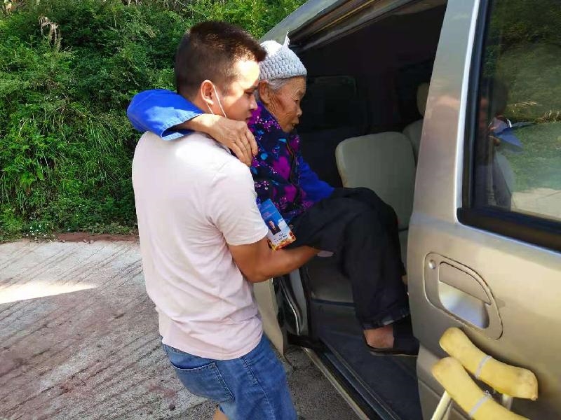 “嬢嬢,现在社区在开展疫苗接种,你行动不方便,我来接你去体检。”二郎镇土城街社区新乡贤、副支书祁连兵,将81岁的居民陈云花抱到社区疫苗接种“包接送”面包车上,扣好安全带,带着他们前往土城卫生院体检、接种疫苗,接种完又送她到信用社查近期的银行流水。回到家后,陈云花流下了感动的泪水。