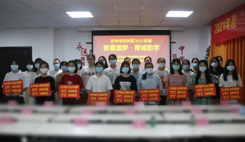 为帮助品学兼优且家庭经济困难的女大学生渡过难关、圆梦校园,在全社会形成关心、重视、支持困境学子的良好氛围,近日,巴州区组织民营爱心企业巴中青诚口腔医院,举行2021年度“春蕾圆梦·青诚助学”资金发放仪式,为15名符合条件的女大学生发放助学金共计3万元,健康体检基金共计3万元。巴州区委常委、宣传部长罗福荣出席活动并讲话。