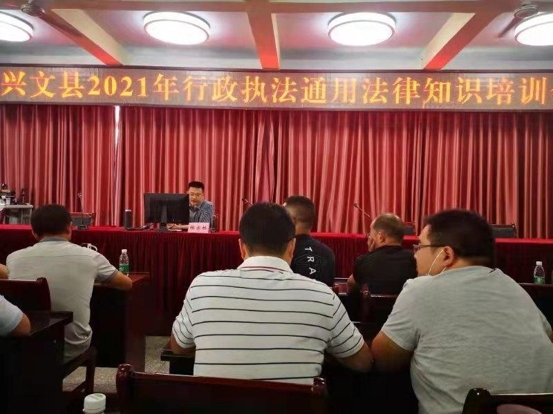 为深刻学习领会习近平新时代中国特色社会主义思想,贯彻落实“全面依法治国,建设社会主义法治国家”的基本方针,着力提升行政执法人员法治意识和执法水平,推动并健全执法规范化建设,9月26日,兴文县举办行政执法人员通用法律知识培训会,县新阶联会会长、晏州律师事务所主任杨宗桥为全县各行政执法部门、乡镇共120余名行政执法人员参加此次培训。