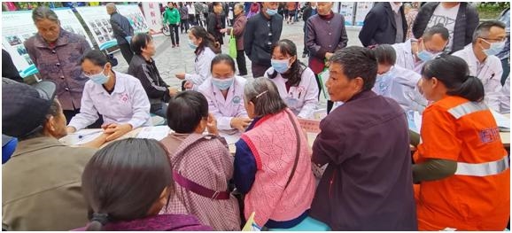 义诊活动现场,前来咨询和就诊的人络绎不绝,盟员医生来自天全县人民医院呼吸内科、儿科、五官科、外科、康复科、骨科等。医生们耐心地为群众听诊把脉,检测血压、血糖,宣传高血糖、高血压、眼部疾病等老年常见病、多发病、慢性病的预防保健知识,普及中医养生保健、合理用药基本常识,耐心地倾听群众讲述病症,解答群众的疑问,并提出专业就诊意见。