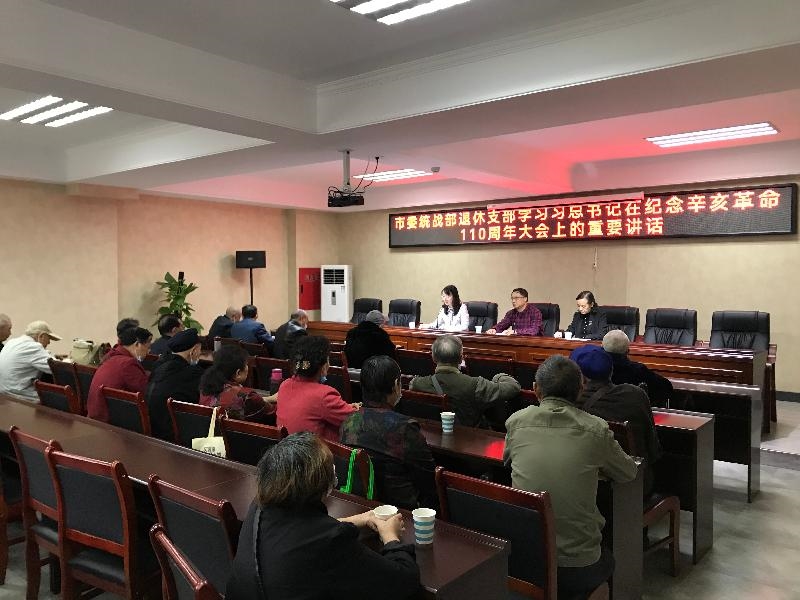 随后,组织召开了市委统战部离退休干部职工座谈会。会上,常务副部长韩俊平通报了全市统一战线工作情况;部机关党委传达学习了习近平总书记在纪念辛亥革命110周年大会上的重要讲话精神。老干部代表畅谈了心得体会。他们纷纷表示,这是一堂生动的党史学习教育课,将继续传承红色基因,弘扬革命精神,践行初心使命,永葆共产党员本色。