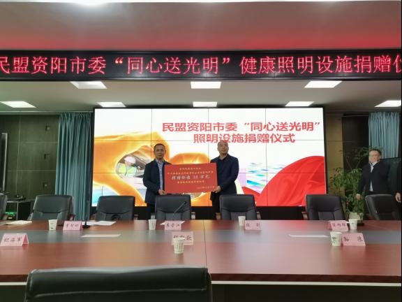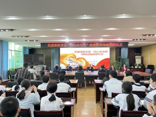 10月15日,民盟资阳市委会“同心送光明”照明设施捐赠仪式在资阳中学举行。民盟资阳市委会主委、市政协副主席廖荣江出席捐赠仪式并致辞。仪式由资阳中学副校长邹克成主持。