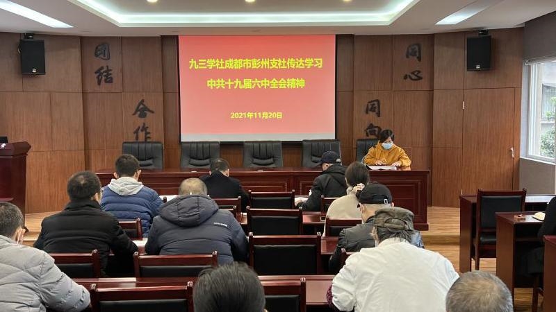 2021年11月20日上午,九三学社彭州支社在彭州市同心朴院同心讲堂会议室召开社员大会,传达学习中国共产党十九届六中全会精神。会议由支社主委罗静主持,支社副主委田平阳、夏太国、杜江波,委员刘高焰、杨春林、陈兴琳,社员及入社积极分子参加会议。会议还邀请彭州市人民政府副市长、九三学社郫都区委员会社员陈俊材到会传达学习了彭州市第十五次党代会精神。