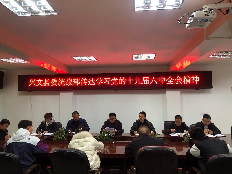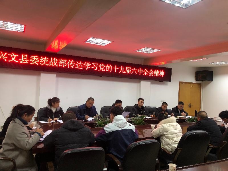 11月24日,兴文县委统战部召开干部职工学习会专题学习贯彻党的十九届六中全会精神。