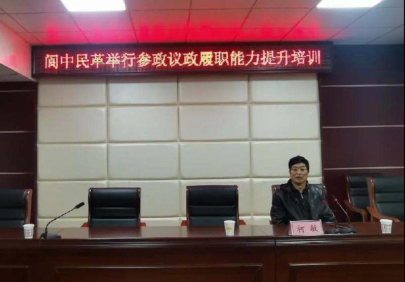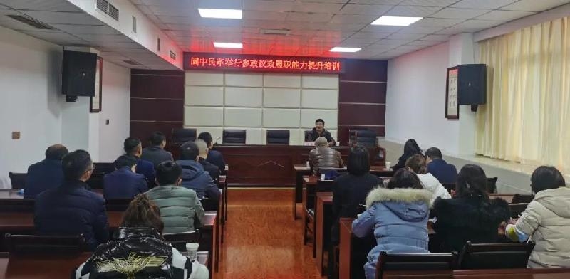 11月23日下午,民革阆中市基层委员会在统战之家会议室举行参政议政履职能力提升培训,部分南充、阆中两级人大代表和政协委员,民革阆中市基层委员会委员和支部主委、副主委参加会议,南充市人大代表、阆中市政协常委柯敏为大家讲课。
