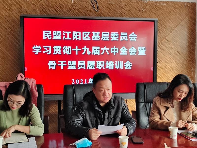 11月25日,民盟泸州市江阳区基层委员会召开贯彻十九届六中全会精神暨骨干盟员培训会,专题学习传达中共十九届六中全会精神,基层委支委及骨干盟员参加会议。