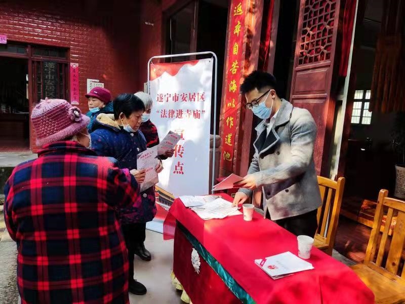 为进一步提高宗教界人士法律素养,引导他们爱国爱教、感恩奋进、持戒守法,安居区民族宗教局用好“法律进寺庙”载体,坚持创新形式、贴近僧众、注重实效,引导宗教界将尊法、守法、学法、用法融入日常活动中,切实维护宗教领域和谐稳定局面。