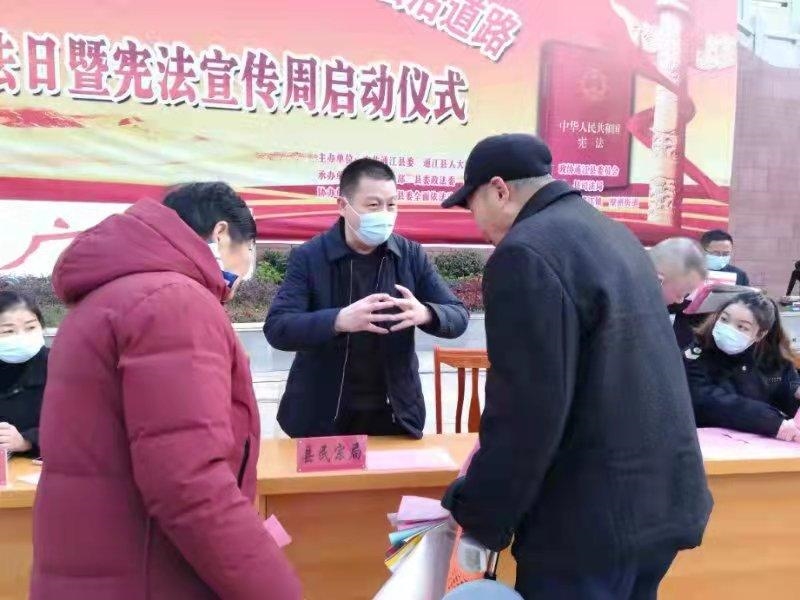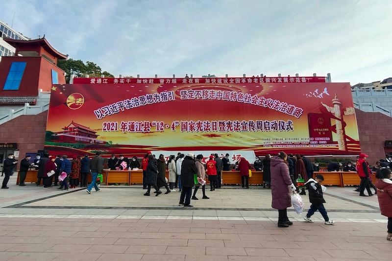 为深入学习宣传习近平法治思想,增强全民法治观念,进一步宣传普及民族宗教政策法规。通江县民宗局开展2021年“国家宪法日”暨通江县“宪法宣传周”广场宣传活动。