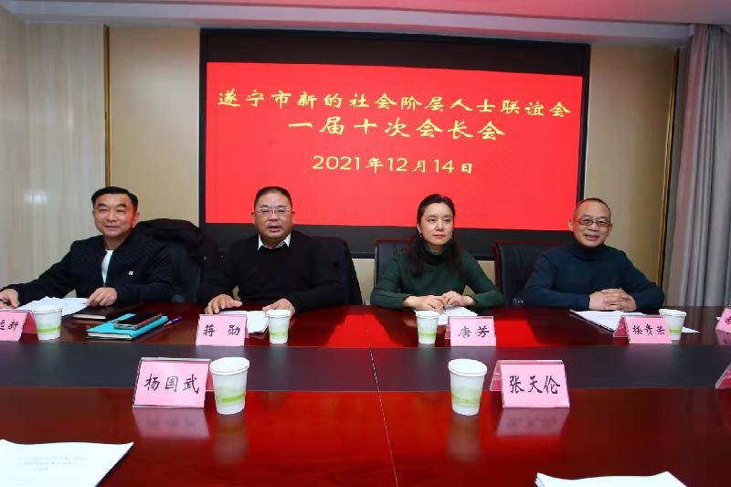 12月14日,遂宁市新联会一届十次会长会议在环岛商务中心召开,市委统战部副部长、市侨办主任唐芳应邀出席会议并讲话,省新联会副会长、市新联会会长蒋勋主持会议。