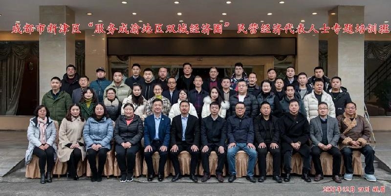 三是举办培训专班。2021年12月19日—24日,成都市新津区“服务成渝地区双城经济圈”民营经济代表人士专题培训班在西南交通大学成功举办,来自成都新津、重庆大足、阿坝小金“三地”的46位民营企业家参加培训。知名专家教授重点围绕现代企业制度建立、“5G+工业互联网”融合创新、民营企业生存之道等进行授课。组织学员前往峨眉雪芽生态茶叶基地、嘉峨茶谷等地对乡村振兴重点项目进行深入调研考察。成都希望食品有限公司党委书记张吉祥,大足青年企业家商会会长、重庆德恒实业公司董事长吴朝波等参加培训人员围绕成渝两地发展机遇、传统产业转型升级、数字化赋能产业链等热点问题深入座谈研讨。