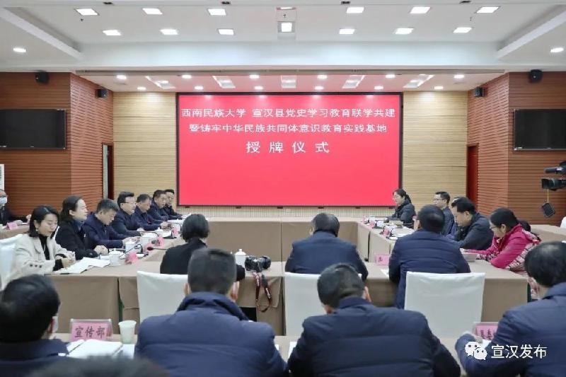 12月28日,西南民族大学宣汉县党史学习教育联学共建暨铸牢中华民族共同体意识教育实践基地授牌仪式在宣汉县举行。西南民族大学党委常委、副校长张华志,宣汉县委书记冯永刚,县委副书记、县长陈军出席授牌仪式。县委副书记杨轶主持授牌仪式。