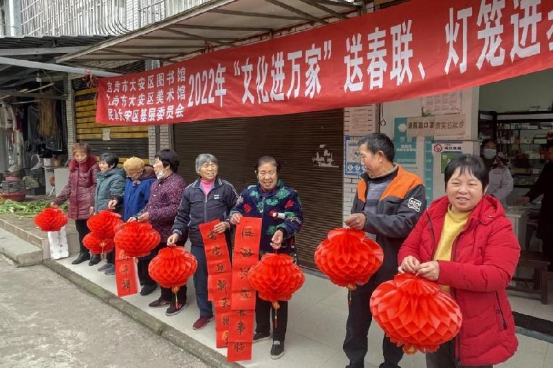 1月11日,为弘扬中华民族传统文化,营造浓郁春节氛围。民革大安基层委员会携手大安区文化馆、图书馆、美术馆开展2022大安区迎春——“文化进万家”送春联、灯笼进基层活动,来自市区的十余位老艺术家为当地群众免费书写春联、送灯笼,提前送去新春祝福。
