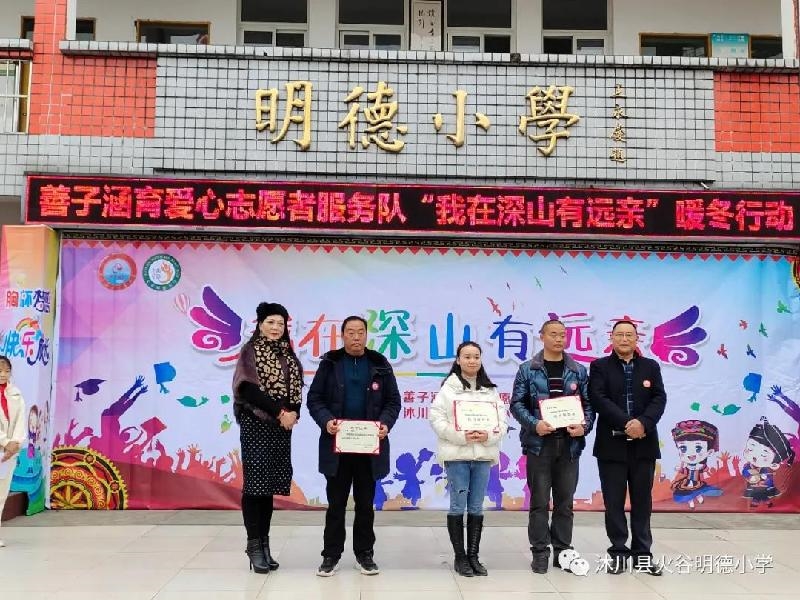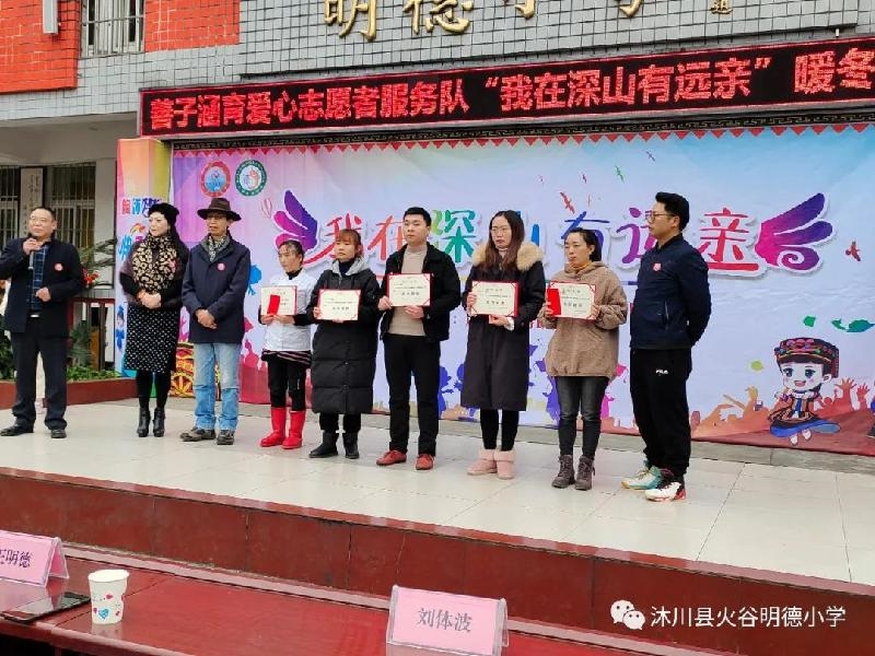善子涵育志愿者服务队对表现突出的优秀教师、优秀后勤、优秀家长、爱心小分队成员进行了表彰,还聘请罗文春为善子涵育志愿者服务队火谷明德小学队长、李胜洪为爱心小分队校外辅导员、张雨婷老师为爱心小分队校内辅导员。