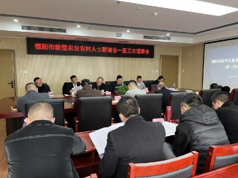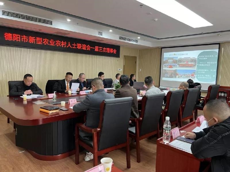 1月13日,德阳市新型农业农村人士联谊会召开一届三次理事会议,市农联会全体理事参加会议。市委统战部副部长毛毅,机关党委书记张金星应邀出席会议。