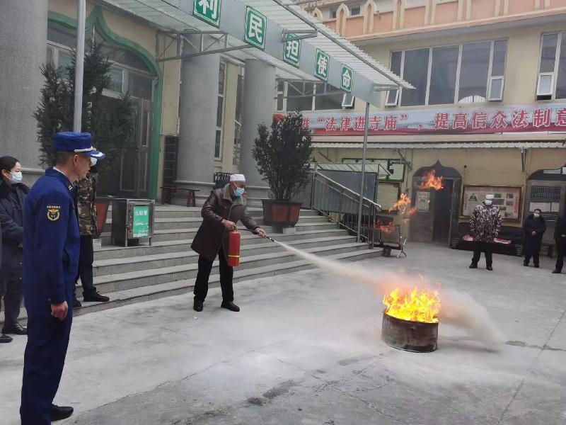 讲解了灭火器材的使用方法,进行了防灭火应急知识培训,回答了现场提问。演练中,现场模拟了场所内起火、紧急撤离,大家现学现用、亲自动手,使用干粉灭火器对宗教活动场所发生的油类燃烧进行迅速扑救,并对余火进行清理,防止复燃。