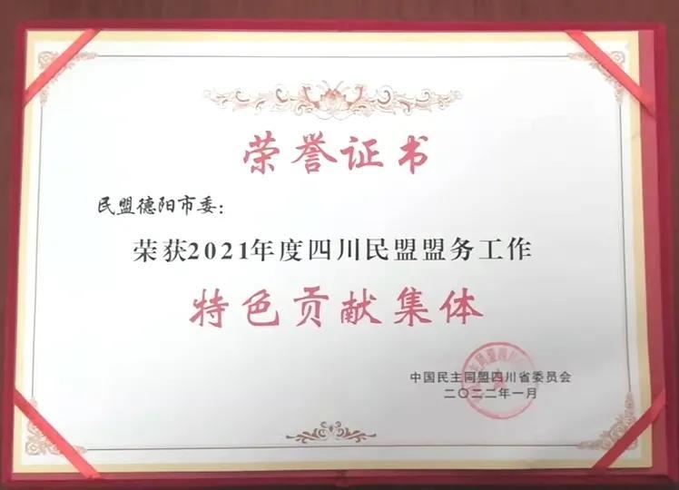 2021年,中共德阳市委团结带领市级各民主党派坚持以习近平新时代中国特色社会主义思想为指导,按照“不忘初心、维护核心、服务中心、凝聚人心”定位要求,围绕市第九次党代会确定的打造全省主干新高地、加快建设西部现代化典范城市发展目标积极履职尽责,深度参与成渝地区双城经济圈建设,扎实开展中共党史学习教育,圆满完成民主党派市级组织换届,推动德阳多党合作事业不断巩固发展,为全面建设社会主义现代化德阳作出了新贡献,多项工作荣获民主党派中央、省委表彰。