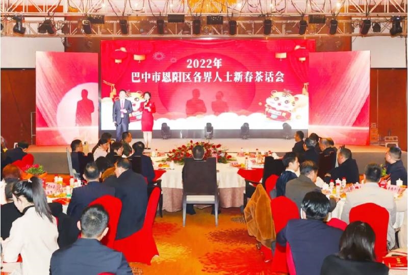 1月27日,恩阳区召开2022年各界人士新春茶话会。区委书记杨波,区委副书记、区长李玉甫,区人大常委会主任邓林平,区政协主席贾君,区委副书记苏伟等区领导与全区各界代表人士欢聚一堂、畅叙友情、共话发展,喜迎2022年新春佳节。