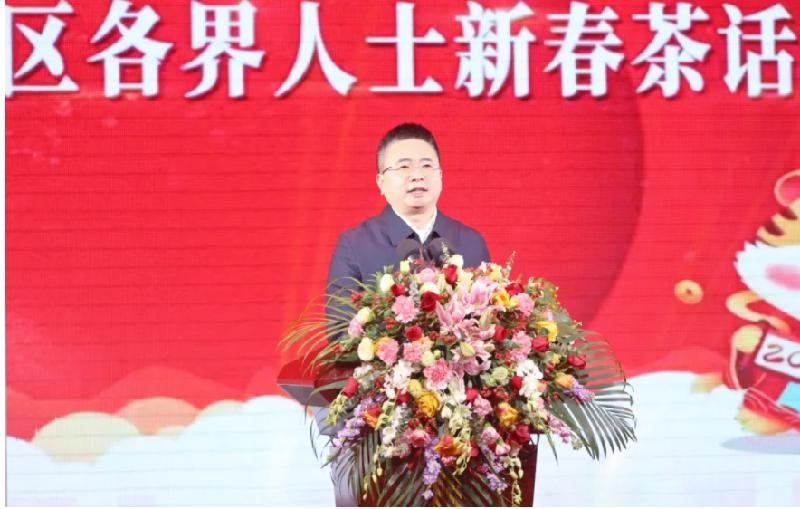 各民主党派、工商联、知联会、新的社会阶层、无党派代表人士、少数民族、宗教界代表,台胞、台属代表、侨胞、侨属代表、民营企业家、来恩客商及返乡创业人员代表、区级有关部门单位负责同志等共计200余人参加茶话会。