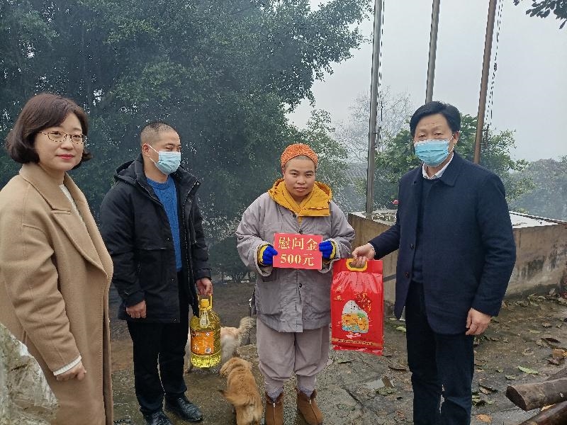 1月28日,泸县县委常委、统战部部长、县总工会主席朱大清率队走访慰问福集镇宝镇寺和天兴镇龙贯寺等宗教场所,为教职人员送去新春祝福和节日慰问。