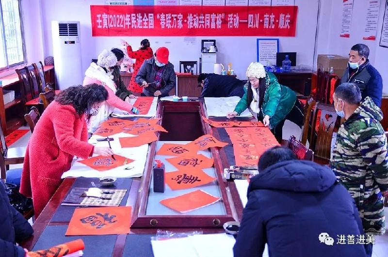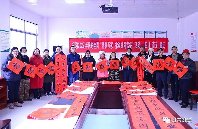 1月27日,民进顺庆区基层委员会组织会内书法爱好者驱车前往金台镇包包田村,开展“壬寅(2022)年民进全国‘春联万家,推动共同富裕’”送文化下乡活动,在寒冷的冬日里为村民们送去温暖的新春祝福。