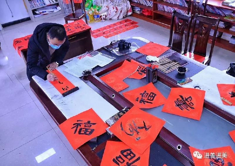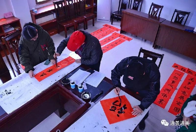 会员们一个个精神饱满,挥毫泼墨,笔走龙蛇。一张张力透纸背的“福”字和一副副对仗工整、寓意吉祥的春联,都洋溢着新春的喜气。
