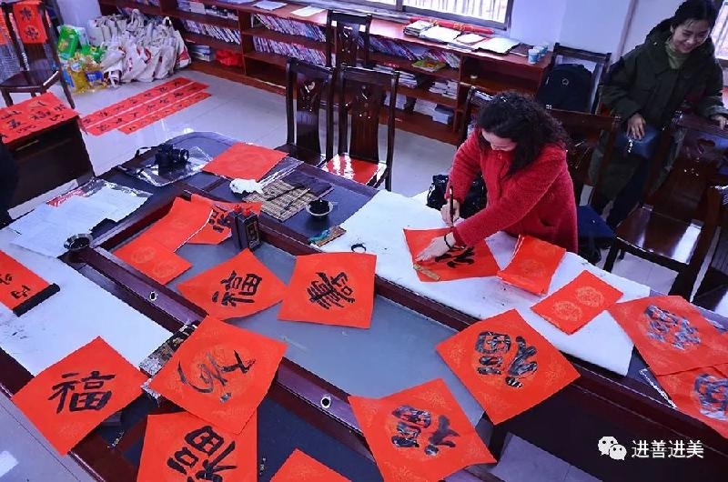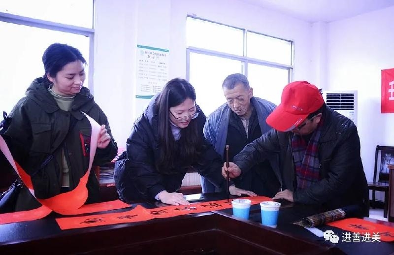 活动现场喜气洋洋,不少村民闻讯赶来,争相邀请老师们为自家写上一幅满意的春联。