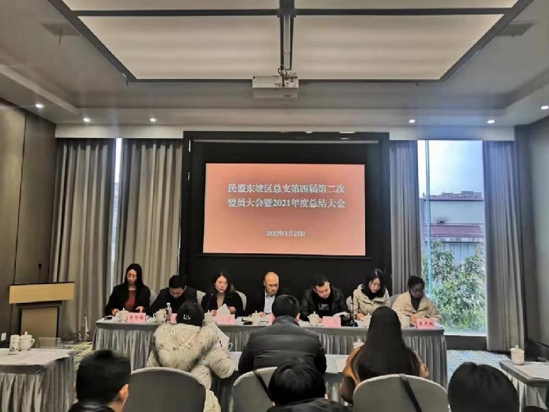 近日,民盟东坡区总支召开第四届第二次盟员大会暨2021年度工作总结大会,民盟眉山市委副主委任学东,东坡区委统战部副部长王洪应邀参加会议。