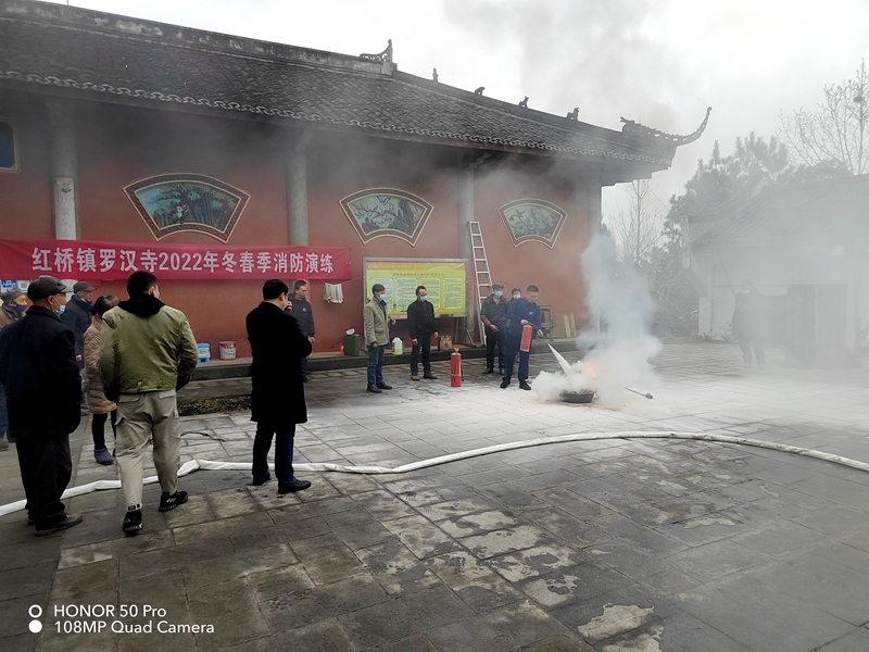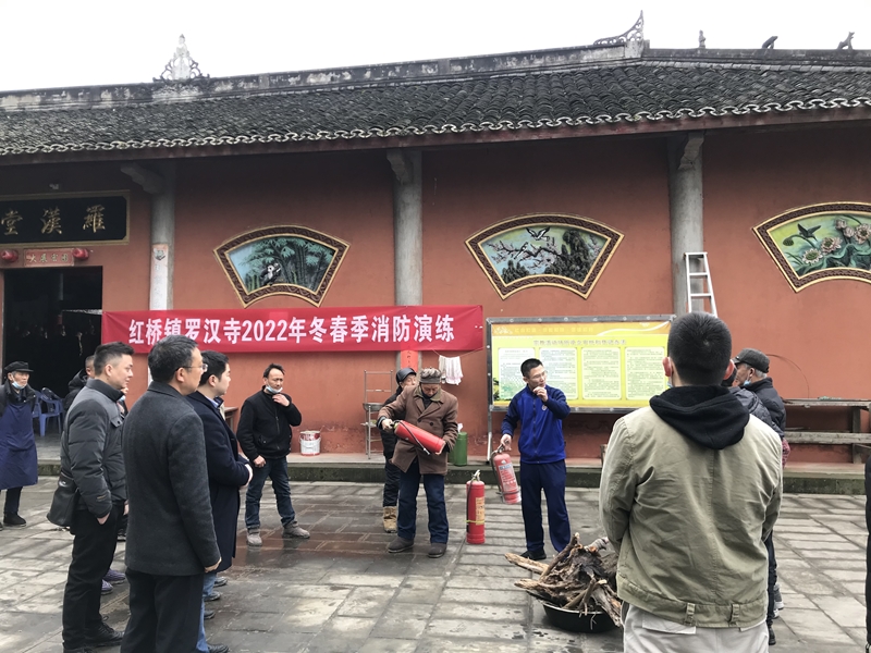 为切实提高宗教活动场所的消防安全管理水平和事故应急处置能力,近日,江安县民宗局会同红桥镇人民政府在罗汉寺举行宗教活动场所消防安全应急处置演练。江安县民宗局、红桥镇人民政府、镇消防救援支队及红桥镇社区、梅岭村、红色村、罗汉寺相关人员参加消防应急演练活动。