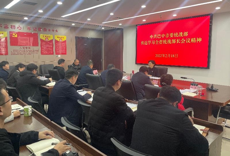 2月18日,巴中市委统战部召开专题会议,传达学习全省统战部长会议精神,市委常委、统战部部长温奇志出席会议并讲话。