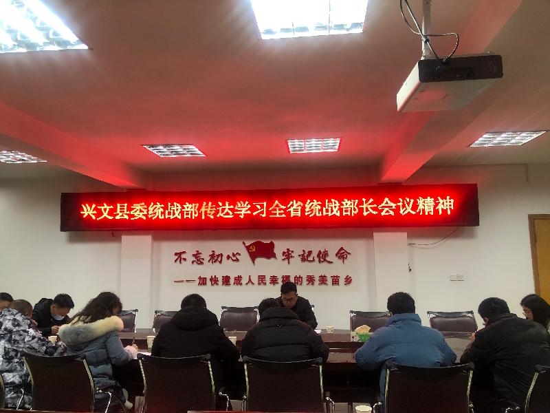 会议指出,全体干部职工要提高站位,深刻认识全省统战部长会议的重要意义,把思想和行动统一到全省统战部长会议精神上来,要深入学习贯彻,细化工作举措,切实把学习贯彻全省统战部长会议精神与兴文统战工作紧密结合。