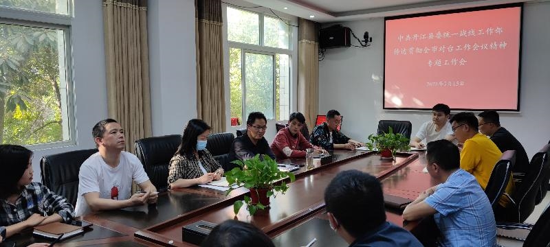 3月15日下午,开江县委统战部召开传达学习贯彻对台工作会议精神专题工作会。县委统战部常务副部长黎晓主持会议,县委统战部全体干部职工参加会议。
