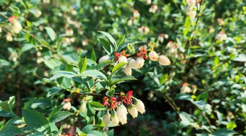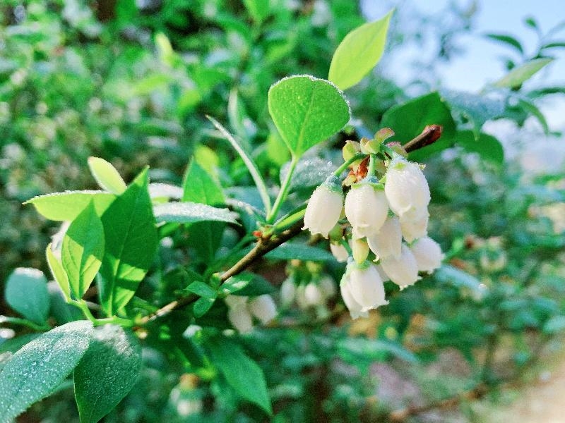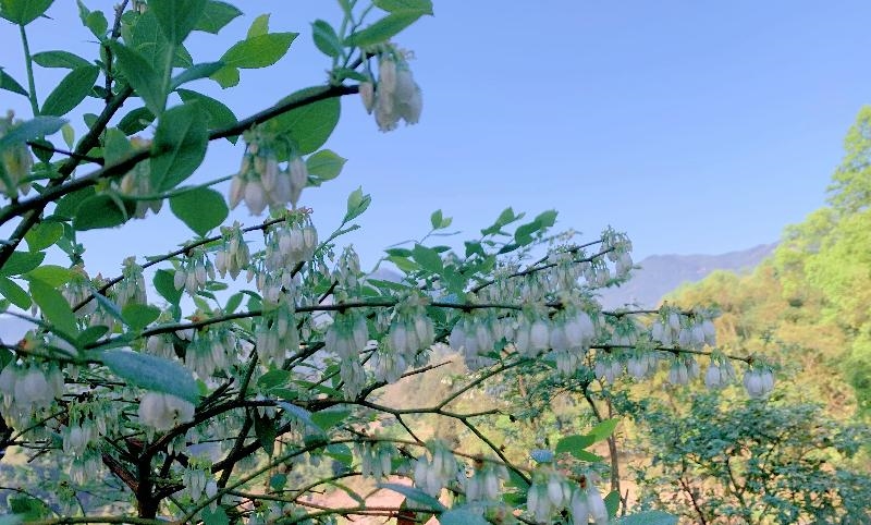 合江县甘雨镇依托地方富硒富锌优质土质资源,大力发展庭院经济,采摘农业。3月,甘雨镇黄桷村乡贤周贤荣的玉美农场蓝莓基地春意盎然,形似“铃兰”的朵朵蓝莓花,挂满枝头,扮美了山村田野,成为一道靓丽风景线,同时也预示着5月蓝莓采摘季将喜迎丰收。(合江县甘雨镇供稿)