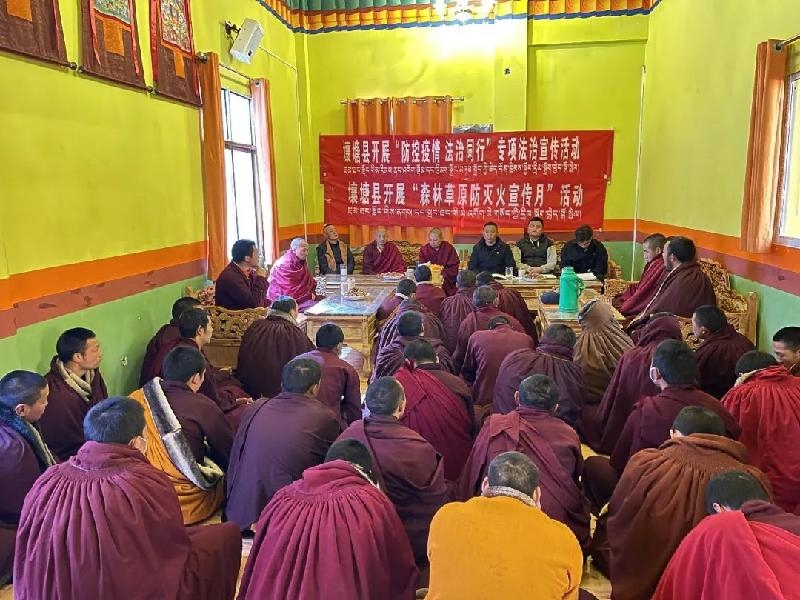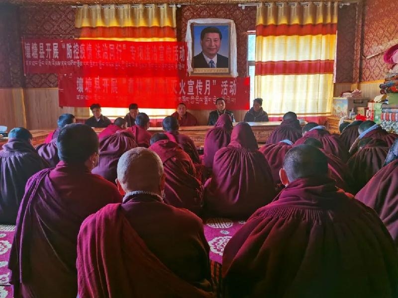 为全面准确贯彻党的宗教工作基本方针,坚持藏传佛教“中国化”,努力画好最大“同心圆”,凝聚最大正能量,3月19日至3月28日,壤塘县委统战部统筹组织县民宗局、县司法局、县佛教协会、县农村信用联社、寺管会(所)组成宣讲队,深入全县37座寺庙及阿坝州娜泽求宗尼姑安置社区,围绕全国、全省、全州民族工作会议和宗教工作会议精神,开展以法律法规、政策知识、教规戒律为内容的“爱国爱教爱家乡”主题宣教活动,覆盖僧尼2500余人次,发放普法挂历、宣传手册及法规政策书籍2500余份。