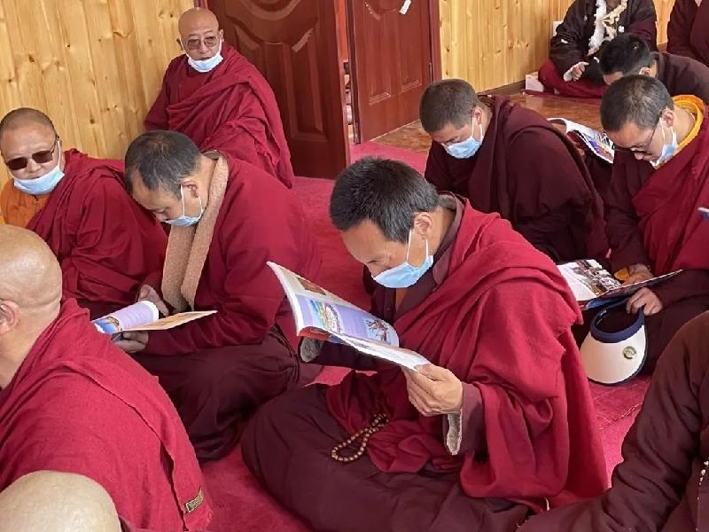 宣讲以铸牢中华民族共同体意识为主线,围绕《中国共产党史》《宗教事务条例》《教育法》《藏传佛教寺庙管理办法》、各级民族工作和宗教工作会议精神、法规政策、教规戒律、县委14项宗教工作重点、安全生产及疫情防控等作为内容,全方位多角度宣教。