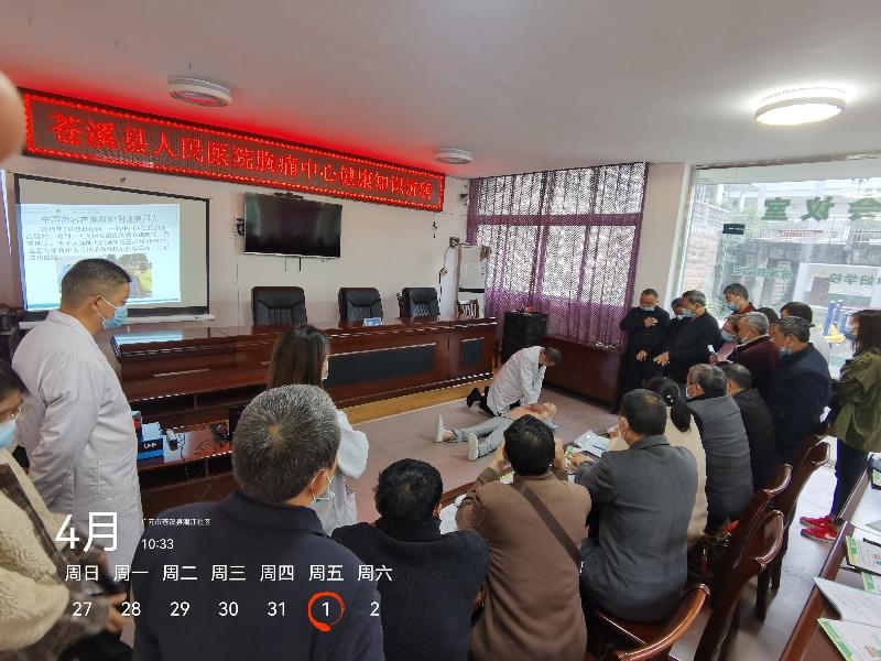 活动现场,来自县人民医院、县妇幼保健院的心血管内科、普外科、眼科、中医康复科等医卫专家,免费为贫困患者做健康体检,对一些常见病、慢性病进行初步筛查、诊断和治疗,为患病群众免费发放药物。随后,在漓江镇中心卫生院,九三学社苍溪委员会医疗专家为漓江镇中心卫生院骨干医生及20余名村医进行了胸痛患者防治措施、心肺复苏培训,县妇幼保健院医师做了两癌知识科普培训。