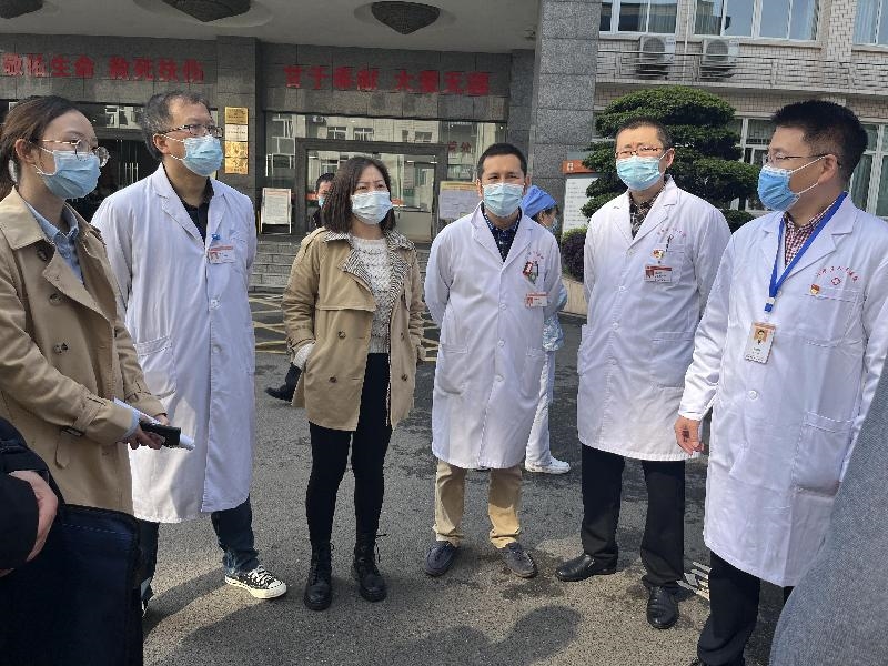 陈冰(左二)、胡振兴(右三)陪同省卫健委专家指导医院防控工作