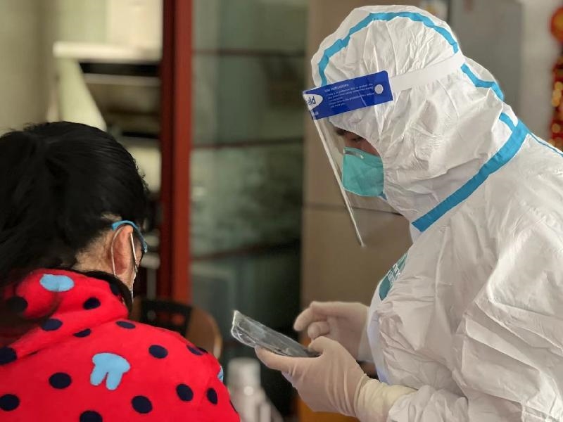 赵天一凌晨入户对居家隔离人员进行核酸检测